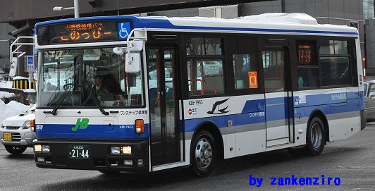 | コメント | JR東海バスから来た中古車で、2000年式のUAです。銀サッシの2段窓ですが、中扉が4枚折戸になっています。これはジェイアール北海道バスではあまり見られない仕様ですね・・・。 |